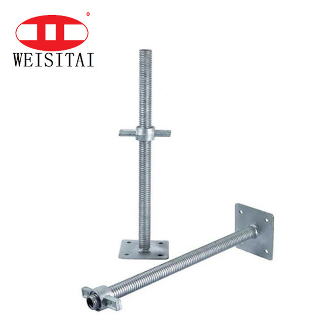 La base del jack del andamio se encuentra en la parte inferior de los estándares, puede proporcionar ajuste para las variaciones en los niveles del suelo, se puede usar con la mayoría de los tipos de andamios del sistema.
